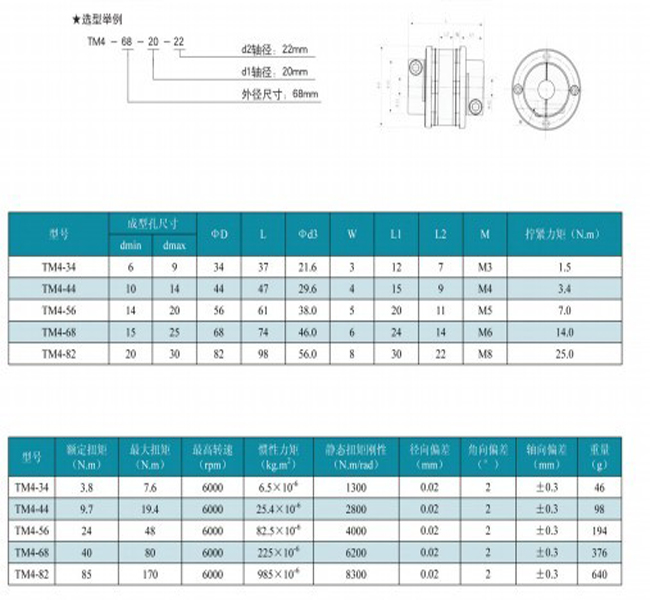 TM4-多節(jié)夾緊螺絲固定式膜片聯(lián)軸器 特點 膜片型彈性聯(lián)軸器 高扭矩剛性和 零回轉(zhuǎn)間隙 順時針與逆時針回轉(zhuǎn)特性 相同 不銹鋼膜片補償角向和軸向偏差 夾緊螺絲固定