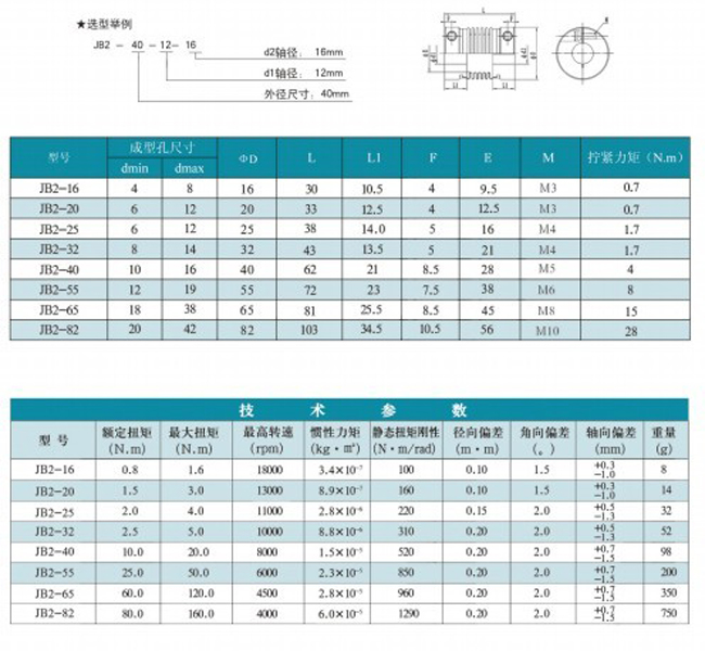 JB2-夾緊螺絲固定式波紋管聯(lián)軸器 特點(diǎn) 高扭矩剛性和 零回轉(zhuǎn)間隙 波紋管結(jié)構(gòu)補(bǔ)償徑向、角向和軸向偏差 順時(shí)針與逆時(shí)針回轉(zhuǎn)特性 相同