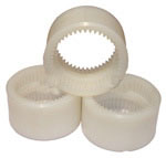 鼓形齒式聯(lián)軸器尼龍?zhí)變?nèi)齒圈屬于剛撓性聯(lián)軸器,齒式聯(lián)軸器是由齒數(shù)相同的內(nèi)齒圈和帶外齒的凸緣半聯(lián)軸器等零件組成。外齒分為直齒和鼓形齒兩種齒形,所謂鼓形齒即為將外齒制成球面,球面中心在齒輪軸線上,齒側(cè)間隙較一般齒輪大,鼓形齒聯(lián)軸器可允許較大的角位移(相對(duì)于直齒聯(lián)軸器),可齒的接觸條件,提高傳遞轉(zhuǎn)矩的能力,延長(zhǎng)使用壽命。有角位移時(shí)沿齒寬的接觸狀態(tài)。具有徑向、軸向和角向等軸線偏差補(bǔ)償能力,具有結(jié)構(gòu)緊湊、回轉(zhuǎn)半徑小、承載能力大、傳動(dòng)、噪聲低及維修周期長(zhǎng)等優(yōu)點(diǎn),特別適用于低速重載工況,如冶金、礦山、起重運(yùn)輸?shù)刃袠I(yè)、也適用于石油、化工、通用機(jī)械等各類機(jī)械的軸系傳動(dòng)