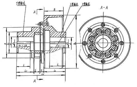 LMZ-Ⅱ(原MLL-Ⅱ)型帶制動(dòng)輪梅花形彈性聯(lián)軸器是由兩個(gè)帶凸爪形狀相同的半聯(lián)軸器和彈性元件組成,利用梅花形彈性元件置于兩半聯(lián)軸器凸爪之間,以實(shí)現(xiàn)兩半聯(lián)軸器的聯(lián)接。具有補(bǔ)償兩軸相對偏移、 減振、緩沖、徑向尺寸小、結(jié)構(gòu)簡單、不用潤滑、承載能力較高、維護(hù)方便等特點(diǎn),但 換彈性元件時(shí)兩半聯(lián)軸器需沿軸向移動(dòng)。適用于聯(lián)接兩同軸線、起動(dòng)頻繁、 正反轉(zhuǎn)變化、中低速、中小功率傳動(dòng)軸系、要求工作性高的工作部位,不適用于重載及軸向尺寸受限制、 換彈性元件后兩軸線對中困難的部位。