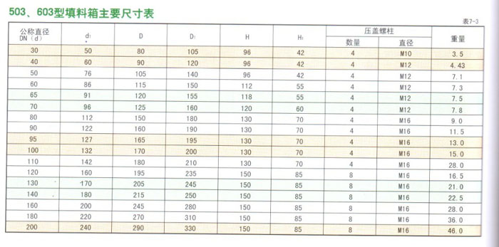 二、503常壓碳鋼填料箱,603常壓不銹鋼填料箱 本標(biāo)準(zhǔn)為化學(xué)、制藥、染料等工業(yè)反應(yīng)釜攪拌軸使用的軸封裝置,其公稱壓力小于等于6kgf/cm2.適用于介質(zhì)溫度大于100C゜或轉(zhuǎn)軸線速度大于等于1m/s。(603型適用于腐蝕性介質(zhì))