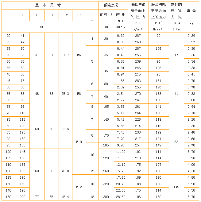 特性: Z3型脹緊聯(lián)接套內(nèi)外錐環(huán)用內(nèi)六角螺栓擰緊,能傳遞較大載荷,并且一個錐環(huán)上有拆卸螺紋孔;Z3型結合面較長,對中性好,適用于旋轉精度要求較高和傳遞大載荷的場合。