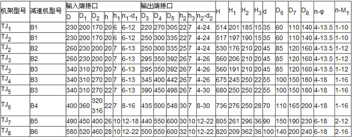 TJ型機(jī)架、下裝JA型聯(lián)軸器,主要參數(shù)及尺寸