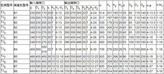 TJ型機架、下裝JA型聯(lián)軸器,主要參數(shù)及尺寸