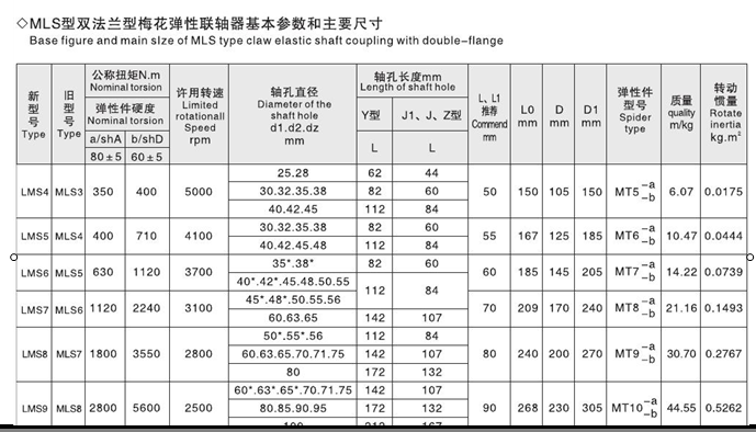LMS(原MLS)型- 雙法蘭型梅花彈性聯(lián)軸器的適用范圍和性能特點(diǎn)