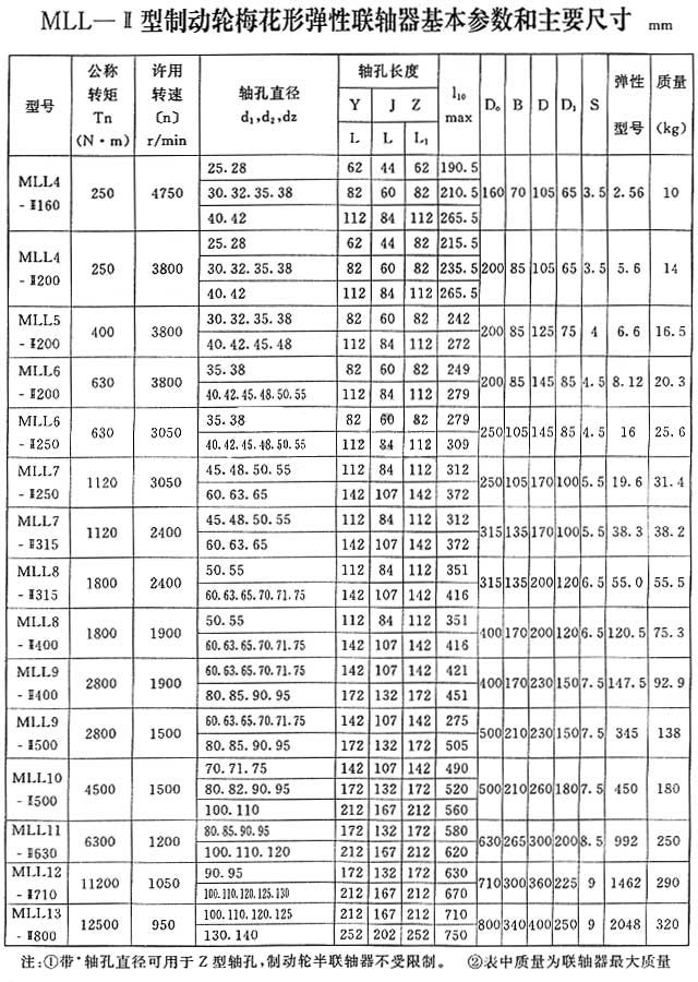 LMZ-Ⅱ(原MLL-Ⅱ)型帶制動(dòng)輪梅花形彈性聯(lián)軸器是由兩個(gè)帶凸爪形狀相同的半聯(lián)軸器和彈性元件組成,利用梅花形彈性元件置于兩半聯(lián)軸器凸爪之間,以實(shí)現(xiàn)兩半聯(lián)軸器的聯(lián)接。具有補(bǔ)償兩軸相對偏移、 減振、緩沖、徑向尺寸小、結(jié)構(gòu)簡單、不用潤滑、承載能力較高、維護(hù)方便等特點(diǎn),但 換彈性元件時(shí)兩半聯(lián)軸器需沿軸向移動(dòng)。適用于聯(lián)接兩同軸線、起動(dòng)頻繁、 正反轉(zhuǎn)變化、中低速、中小功率傳動(dòng)軸系、要求工作性高的工作部位,不適用于重載及軸向尺寸受限制、 換彈性元件后兩軸線對中困難的部位。